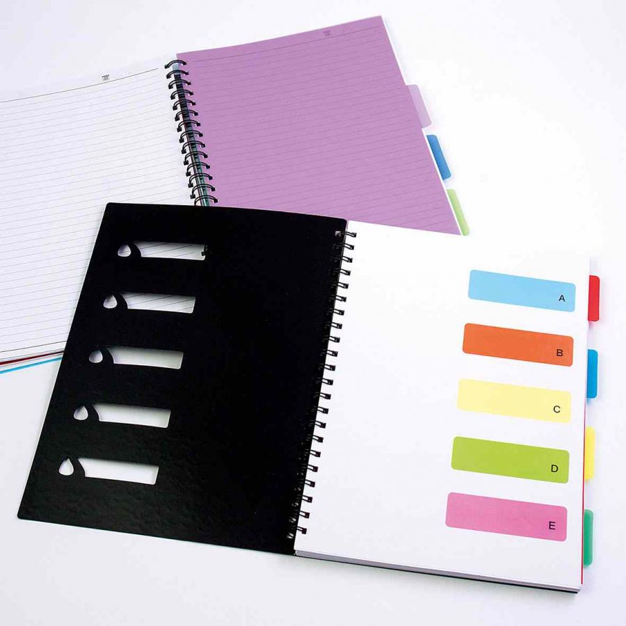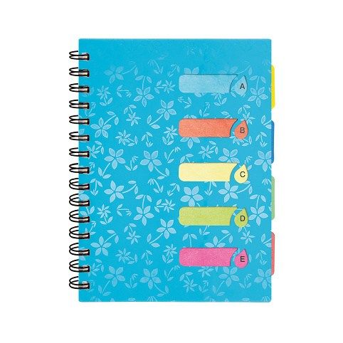 Sešit se záložkami/s plastovými rozřaďovači různých barev s praktickou kapsičkou, velikost A4, linkovaný, 120 listů. Nezbytná součást školních potřeb. Hodí se i do kanceláře