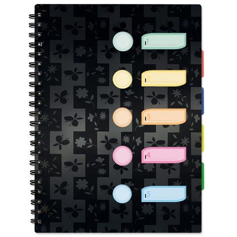 Sešit se záložkami/s plastovými rozřaďovači různých barev s praktickou kapsičkou, velikost A4, linkovaný, 120 listů. Nezbytná součást školních potřeb. Hodí se i do kanceláře.