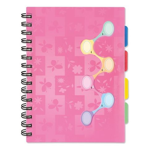 Sešit se záložkami/s plastovými rozřaďovači různých barev s praktickou kapsičkou, velikost A5, linkovaný, 120 listů. Nezbytná součást školních potřeb. Hodí se i do kanceláře