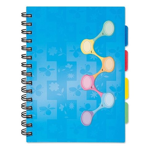 Sešit se záložkami/s plastovými rozřaďovači různých barev s praktickou kapsičkou, velikost A5, linkovaný, 120 listů. Nezbytná součást školních potřeb. Hodí se i do kanceláře