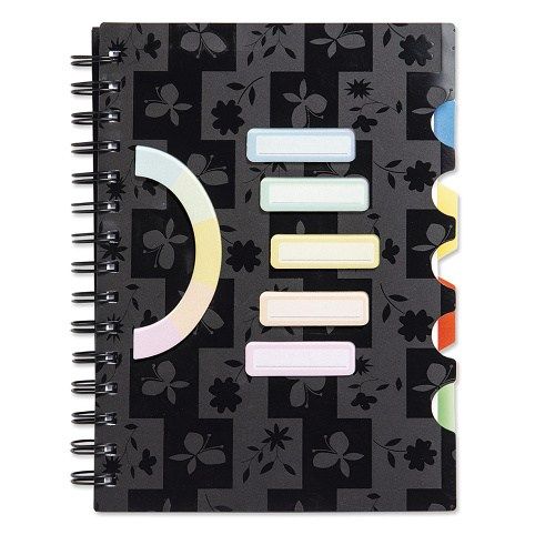 Sešit se záložkami/s plastovými rozřaďovači různých barev s praktickou kapsičkou, velikost A5, linkovaný, 120 listů. Nezbytná součást školních potřeb. Hodí se i do kanceláře