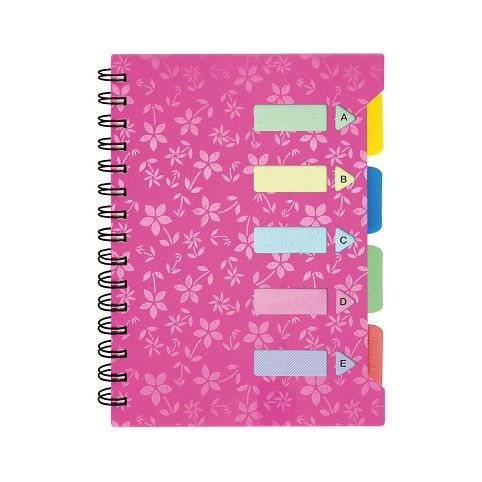 Sešit se záložkami/s plastovými rozřaďovači různých barev s praktickou kapsičkou, velikost B5, linkovaný, 120 listů. Nezbytná součást školních potřeb. Hodí se i do kanceláře