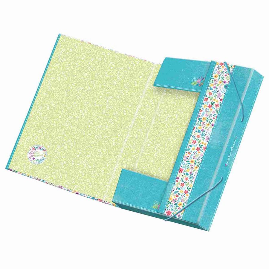 Box velikosti A4 Hello summer na sešity a jiné dokumenty s motivem pro děvčata a ženy. Box je z tvrdého papírového materiálu uzavřen ze všech stran s PUV lakováním a jemným vnitřním potiskem. Box má gumičky v horní a dolní části, které brání samovolnému otevření. Box chrání vaše dokumenty a sešity před poškozením a navíc máte je všechny pěkně v jednom obale.