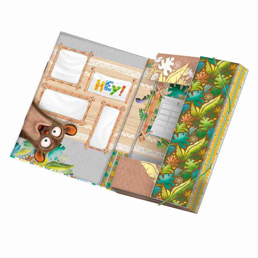 Školní box velikosti A4 Hey! na sešity a jiné dokumenty s veselým motivem. Box je z tvrdého papírového materiálu uzavřen ze všech stran s PUV lakováním, vnitřním potiskem a rozvrhem hodin. Box má gumičky v horní a dolní části, které brání samovolnému otevření. Školní box chrání sešity před poškozením a navíc, vaše dítě bude mít všechny sešity pohromadě.