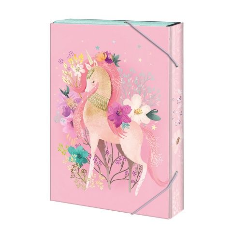 Školní box velikosti A4 Magical WORLD na sešity a jiné dokumenty. Box je z tvrdého papírového materiálu uzavřen ze všech stran s PUV lakováním, vnitřním potiskem a rozvrhem hodin. Box má gumičky v horní a dolní části, které brání samovolnému otevření. Školní box chrání sešity před poškozením a navíc, vaše dítě bude mít všechny sešity pohromadě.