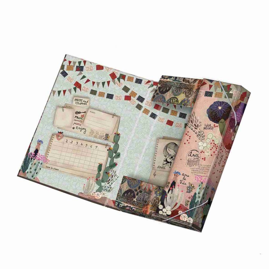 Školní box velikosti A5 Anekke na sešity a jiné dokumenty s motivem známého děvčátka Anekke z dílny španělské designérky. Box je z tvrdého papírového materiálu uzavřen ze všech stran s PUV lakováním, vnitřním potiskem a rozvrhem hodin. Box má gumičky v horní a dolní části, které brání samovolnému otevření. Školní box chrání sešity před poškozením a navíc, vaše školačka bude mít všechny sešity pohromadě.
