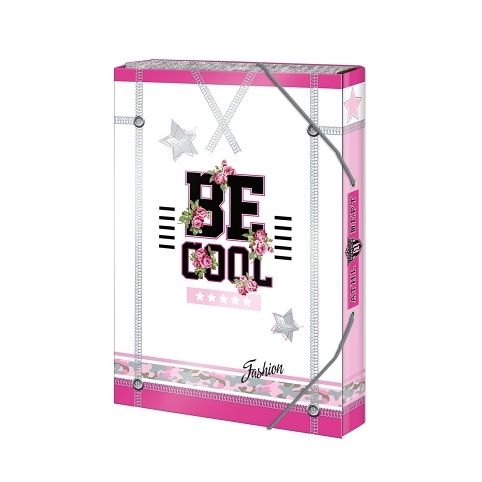 Box velikosti A5 BE COOL na sešity a jiné dokumenty s motivem pro děvčata. Box je z tvrdého papírového materiálu uzavřen ze všech stran s PUV lakováním, vnitřním potiskem a rozvrhem hodin. Box má gumičky v horní a dolní části, které brání samovolnému otevření. Box chrání vaše dokumenty a sešity před poškozením a navíc máte je všechny pěkně v jednom obale.