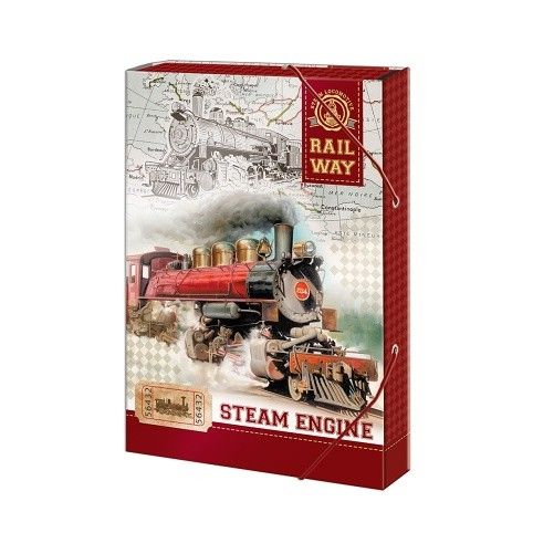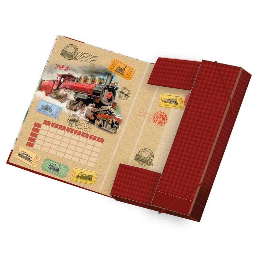 Školní box velikosti A5 Train na sešity a jiné dokumenty. Box je z tvrdého papírového materiálu uzavřen ze všech stran s PUV lakováním, vnitřním potiskem a rozvrhem hodin. Box má gumičky v horní a dolní části, které brání samovolnému otevření. Školní box chrání sešity před poškozením a navíc, vaše dítě bude mít všechny sešity pohromadě.
