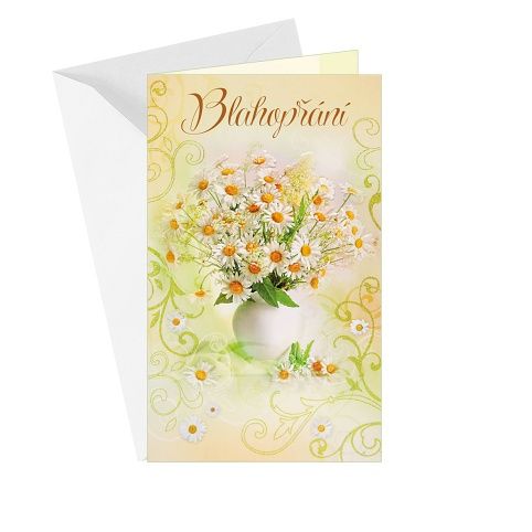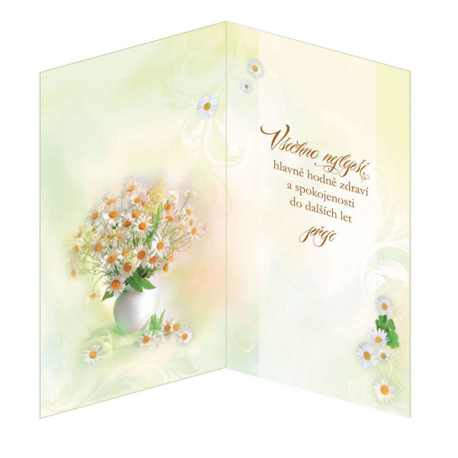 Narozeninové přání, přání k svátku nebo jiné příležitosti s textem uvnitř přání. Součástí blahopřání je barevně sladěna obálka. Originální technologie zpracování přáníčka od společnosti ARGUS - "Na detailu záleží!"
