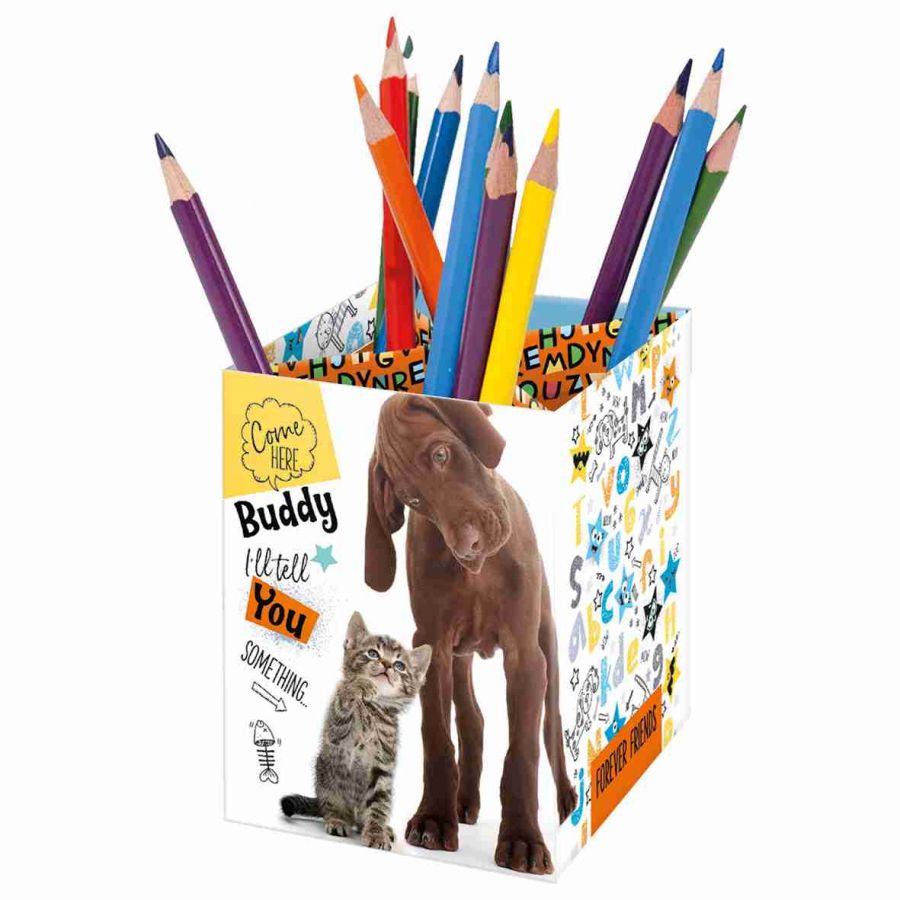 Stojan na pera a tužky Forever friends. Stojan na pera je praktickou pomůckou, jak udržet na stole školáka pořádek a mít základní psací a kreslicí potřeby po ruce. Jeho vnitřní prostor je rozdělen na 4 části. Stojan je vyroben z kvalitního tvrdého kartonu.