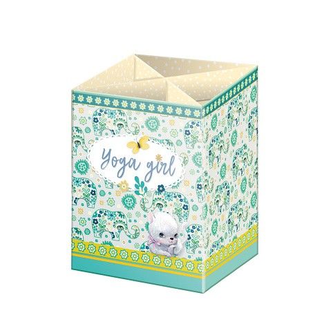 Stojan na pera a tužky Yoga girl. Stojan na pera je praktickou pomůckou, jak udržet na stole školáka pořádek a mít základní psací a kreslicí potřeby po ruce. Jeho vnitřní prostor je rozdělen na 4 části. Stojan je vyroben z kvalitního tvrdého kartonu.