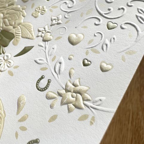 Svatební přání s textem uvnitř. Součástí přání je barevně sladěna obálka. Originální technologie zpracování od společnosti ARGUS - "Na detailu záleží!"