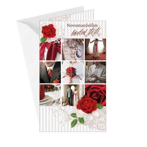 Přání k svatbě. Bez vnitřního textu. Přání má k dispozici inspirační texty, které můžete použít a vepsat do přání. Součástí přání je barevně sladěna obálka. Originální technologie zpracování od společnosti ARGUS - "Na detailu záleží!"