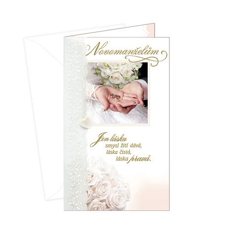 Svatební přání. Součástí blahopřání je barevně sladěna obálka a inspirační texty, ze kterých můžete použít to, které se vám nejvíce líbí. Součástí přání je bílá perleťová obálka. Originální technologie zpracování od společnosti ARGUS - "Na detailu záleží!"