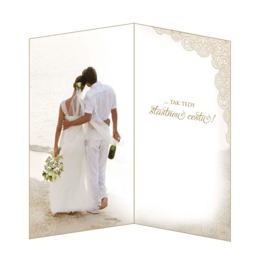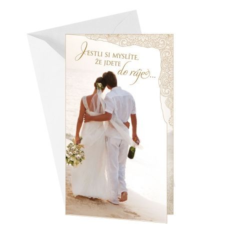 Svatební přání. Text uvnitř přánička. Součástí přání je barevně sladěna obálka. Originální technologie zpracování od společnosti ARGUS - "Na detailu záleží!"