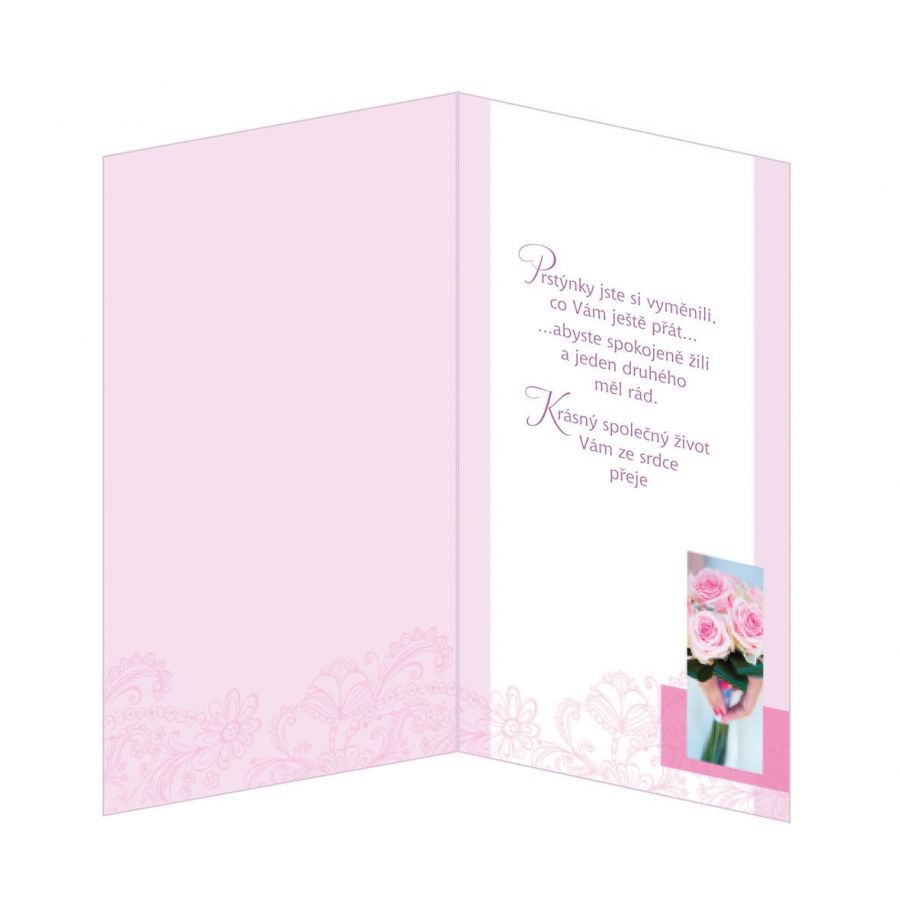 Svatební přání s lepeným, kamínkem. Text uvnitř. Součástí přání je barevně sladěna obálka. Originální technologie zpracování od společnosti ARGUS - "Na detailu záleží!"