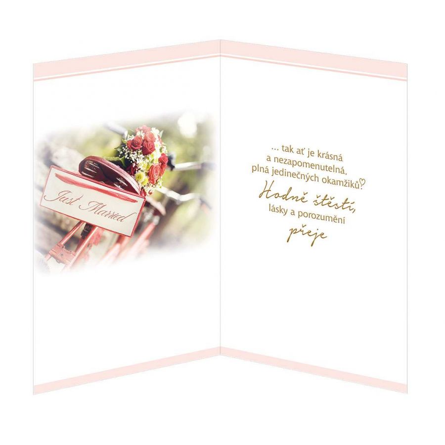 Svatební přání. Text uvnitř. Součástí přání je barevně sladěna obálka. Originální technologie zpracování od společnosti ARGUS - "Na detailu záleží!"