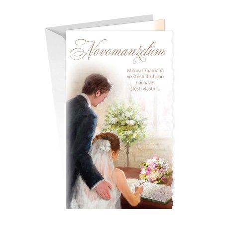 Svatební přání s textem uvnitř. Součástí přání je barevně sladěna obálka. Originální technologie zpracování od společnosti ARGUS - "Na detailu záleží!"