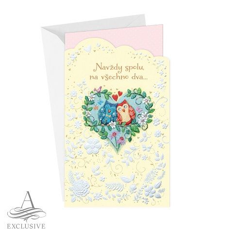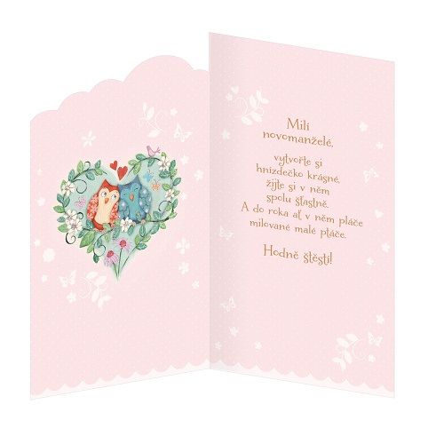 Svatební přání s textem uvnitř. Součástí přání je barevně sladěna obálka. Originální technologie zpracování od společnosti ARGUS - "Na detailu záleží!"