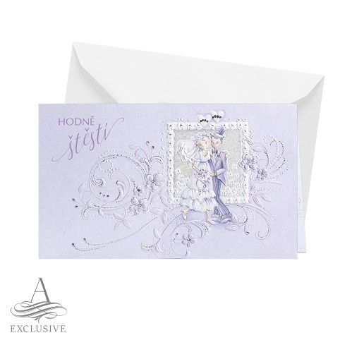 Svatební přání s textem uvnitř. Součástí přání je barevně sladěna obálka. Originální technologie zpracování od společnosti ARGUS - "Na detailu záleží!"