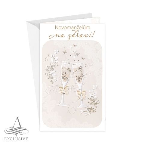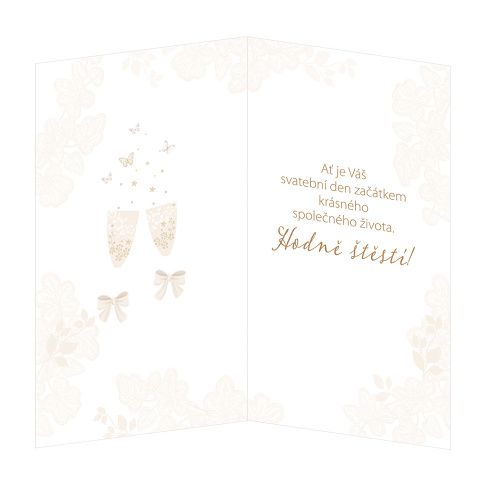 Svatební přání s textem uvnitř. Součástí přání je barevně sladěna obálka. Originální technologie zpracování od společnosti ARGUS - "Na detailu záleží!"