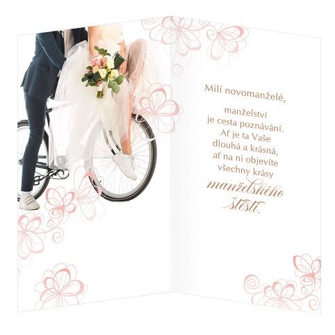 Svatební přání s textem uvnitř. Součástí přání je barevně sladěna obálka. Originální technologie zpracování od společnosti ARGUS - "Na detailu záleží!"