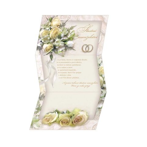 Svatební přání s textem uvnitř. Součástí přání je barevně sladěna obálka. Originální technologie zpracování od společnosti ARGUS - "Na detailu záleží!"