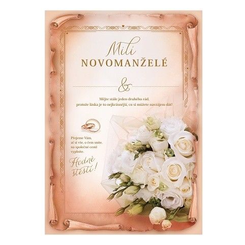 Svatební přání s textem - listina. Součástí přání je barevně sladěna obálka. Originální technologie zpracování od společnosti ARGUS - "Na detailu záleží!"