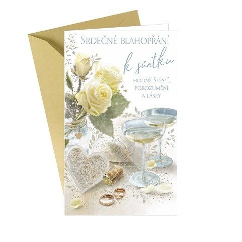 Svatební přání. Bez vnitřního textu. Přání má k dispozici inspirační texty, které můžete použít a vepsat do přání. Součástí přání je barevně sladěna obálka. Originální technologie zpracování od společnosti ARGUS - "Na detailu záleží!"