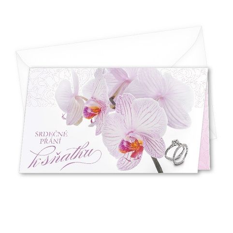 Svatební blahopřání s kapsou na peníze a textem uvnitř přání. Součástí blahopřání je také barevně sladěná obálka. Originální technologie zpracování od společnosti ARGUS - "Na detailu záleží!"