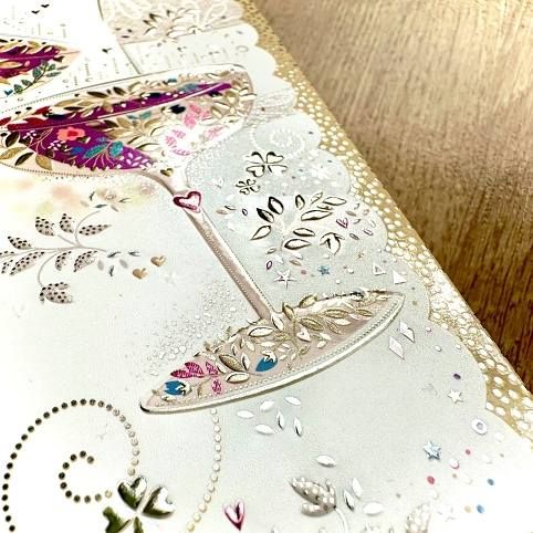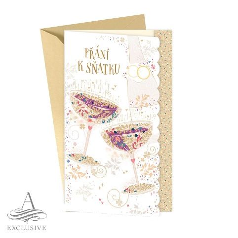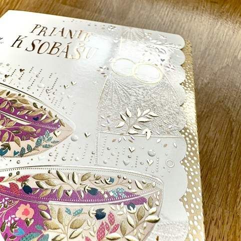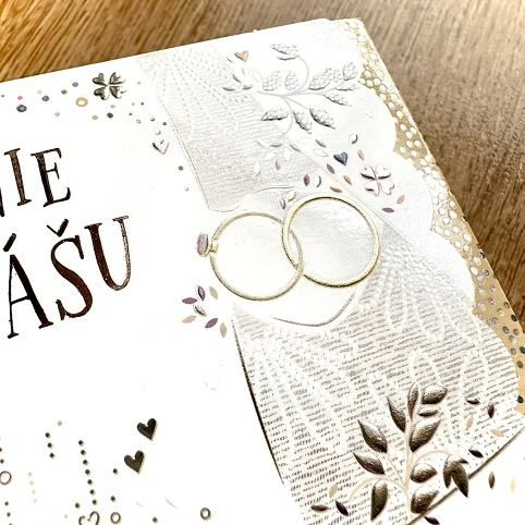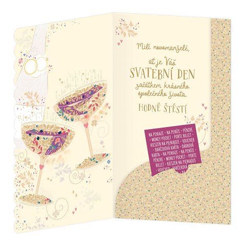 Svatební blahopřání s kapsou na peníze a textem uvnitř přání. Součástí blahopřání je také barevně sladěná obálka. Originální technologie zpracování od společnosti ARGUS - "Na detailu záleží!"