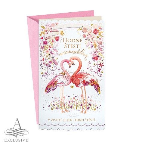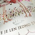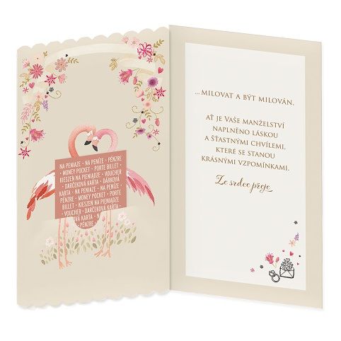 Svatební blahopřání s kapsou na peníze a textem uvnitř přání. Součástí blahopřání je také barevně sladěná obálka. Originální technologie zpracování od společnosti ARGUS - "Na detailu záleží!"