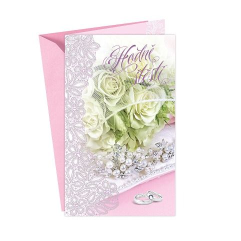 Svatební přání. Bez textu uvnitř. Součástí přání je barevně sladěna obálka. Originální technologie zpracování od společnosti ARGUS - "Na detailu záleží!"