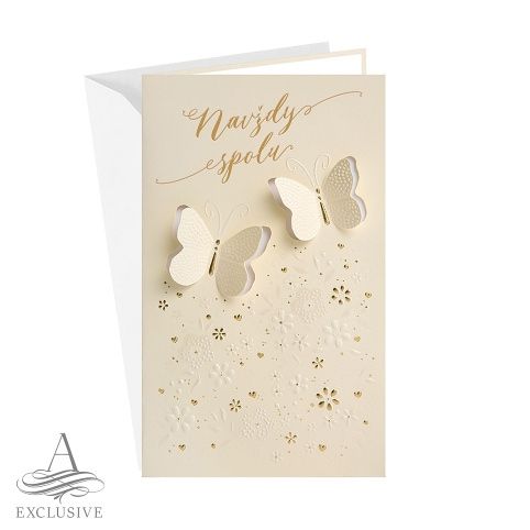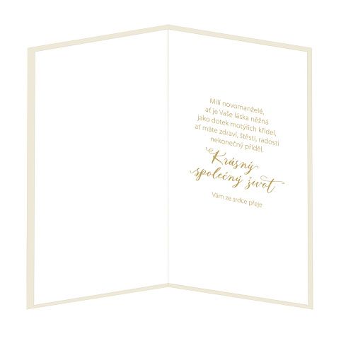 Svatební přání s textem uvnitř. Součástí přání je barevně sladěna obálka. Originální technologie zpracování od společnosti ARGUS - "Na detailu záleží!"