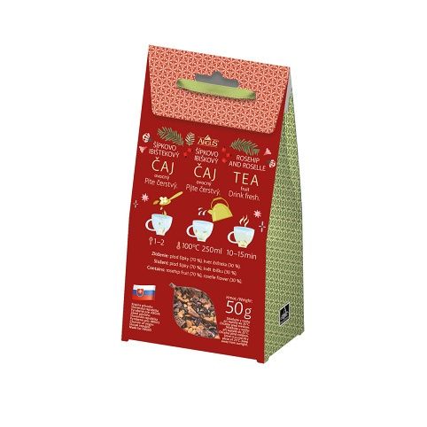 Sypaný čaj v luxusní dárkové krabičce s mašličkou vhodný jako dárek. Šípkovo-ibiškový čaj 50g, složení - květ ibišku, plod šípku. Čaje dodává FYTOPHARMA Malacky.