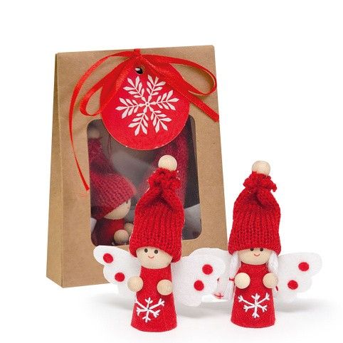 Dárek pro štěstí - textilní figurka, výška 7,5 cm, obsahuje povrázek na pověšení. Balení obsahuje 2 figurky v kraftové krabičce. Cena je za krabičku.