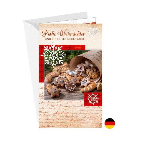 Vánoční a novoroční přání s německým textem. Bez textu uvnitř. Součástí přání je i barevně sladěna obálka. Originální technologie zpracování od společnosti ARGUS - "Na detaile záleží!"