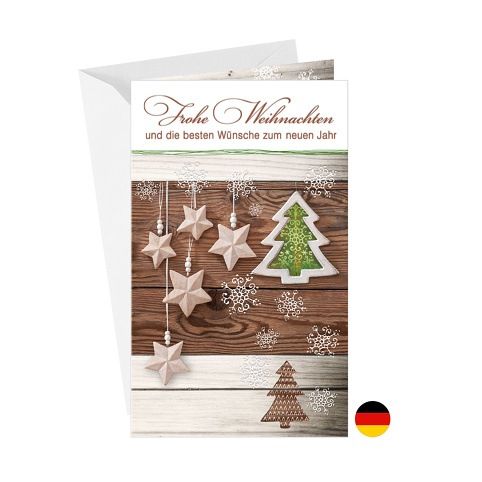 Vánoční a novoroční přání s německým textem. Bez textu uvnitř. Součástí přání je i barevně sladěna obálka. Originální technologie zpracování od společnosti ARGUS - "Na detaile záleží!"