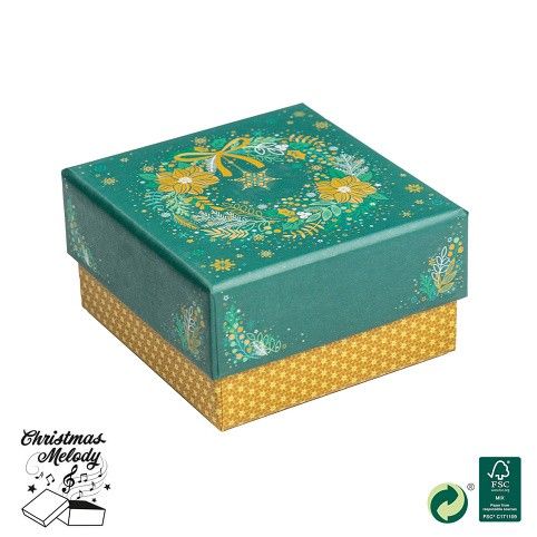 Vánoční dárková krabička s hudbou. Po otevření krabičky se spustí píseň s vánoční tématikou „Tichá noc“. Vánoční krabičky jsou nádhernou možností, jak zabalit drobnosti pro Vámi milované osoby pod vánoční stromeček. Krabička obsahuje baterii.