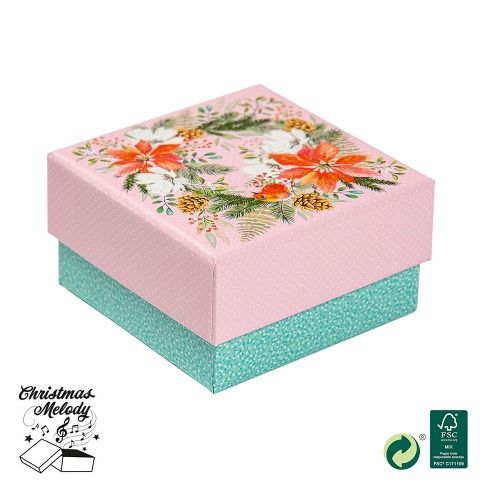 Vánoční dárková krabička s hudbou. Po otevření krabičky se spustí píseň s vánoční tématikou „We wish you a merry Christmas “. Vánoční krabičky jsou nádhernou možností, jak zabalit drobnosti pro Vámi milované osoby pod vánoční stromeček. Krabička obsahuje baterii.