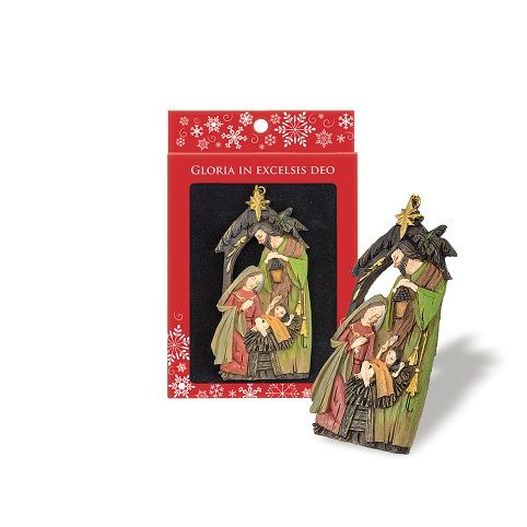 Vánoční ozdoba z pryskyřice - Betlém - dekorace na zavěšení se šňůrkou. Je vhodný i jako malý vánoční dárek, zabalený v červené krabičce.