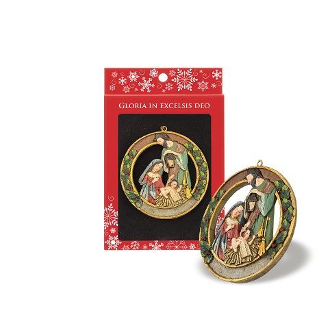 Vánoční ozdoba z pryskyřice - Betlém - dekorace na zavěšení se šňůrkou. Je vhodný i jako malý vánoční dárek, zabalený v červené krabičce.