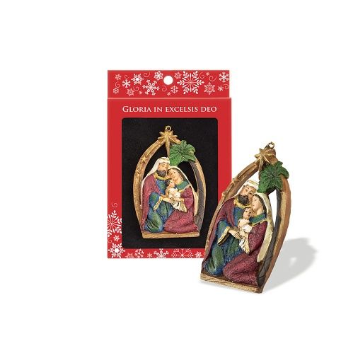 Vánoční ozdoba z pryskyřice - Betlém - dekorace na zavěšení se šňůrkou. Je vhodný i jako malý vánoční dárek, zabalený v červené krabičce.
