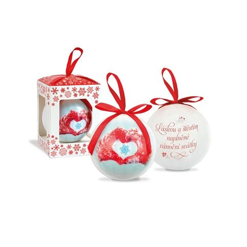 Lehká a nerozbitná vánoční koule O 8 cm - ozdoba i vánoční dekorace s krátkým přáním na zadní straně. Tato krásná vánoční koule s obrázkem je zabalena v dárkové krabičce a její součástí je šňůrka. Darujte ji těm, které máte rádi!
