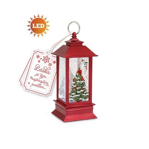 Vánoční dekorace - Lucerna s LED světlem a potiskem, doplněná ozdobným přívěškem s textem. Vhodná i jako vánoční dárek. Baterie je součástí lucerny.