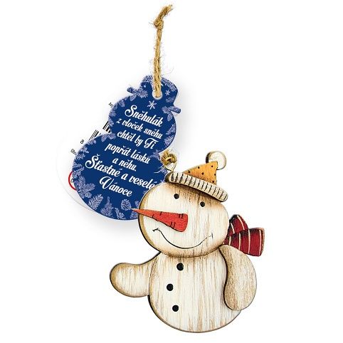 Vánoční dřevěná ozdoba a dekorace - sněhulák s věnováním. Sněhulák vhodný i jako malý vánoční pro přátele, které máte rádi.
