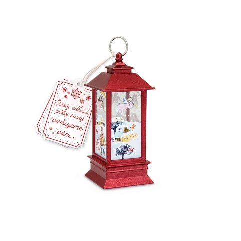 Vánoční dekorace - Lucerna s LED světlem a potiskem, doplněná ozdobným přívěškem s textem. Vhodná i jako vánoční dárek. Baterie je součástí lucerny.