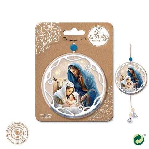 Vánoční dřevěná dekorace ve tvaru kruhu s rolničkami.* překližkový dřevěný kruh s jednostranným potiskem* se šňůrkou a korálkem zavěšená na kraftové hlavičce* velmi vhodná jako ozdoba na vánoční stromeček, ale také jako malý vánoční dárek pro přátele, které máte rádi.