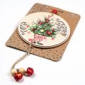 Vánoční dřevěná dekorace ve tvaru kruhu s rolničkami.* překližkový dřevěný kruh s jednostranným potiskem* se šňůrkou a korálkem zavěšená na kraftové hlavičce* velmi vhodná jako ozdoba na vánoční stromeček, ale také jako malý vánoční dárek pro přátele, které máte rádi.