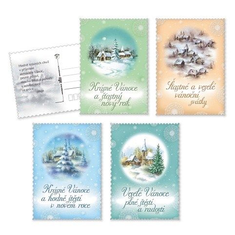 Vánoční pohlednice s textem na zadní straně. Originální technologie zpracování od společnosti ARGUS - "Na detailu záleží!"